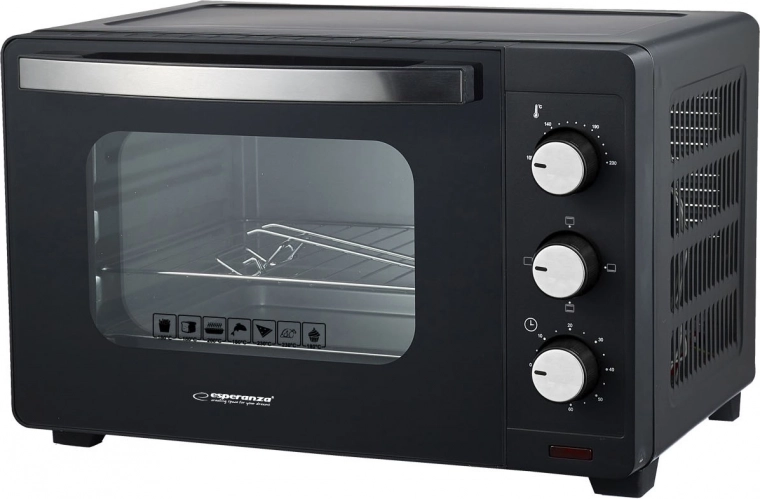 Mini piekarnik ESPERANZA PROSCIUTTO zapewnia niezawodną wydajność w kompaktowej obudowie. Dzięki pojemności 20 litrów z łatwością przygotujesz pizzę, zapiekanki czy pieczywo. Moc 1280 W gwarantuje szybkie nagrzewanie i równomierne pieczenie, a podwójna hartowana szyba w drzwiach poprawia izolację termiczną i bezpieczeństwo.