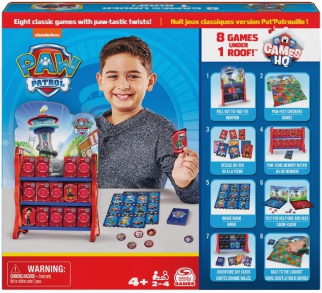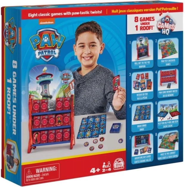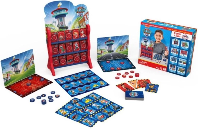 Ciesz się rodzinną zabawą z zestawem ośmiu klasycznych gier w wyjątkowym 3D stylu centrali PSI PATROL. Znajdziesz tu bingo, kółko i krzyżyk, warcaby i inne proste gry dla 2–4 graczy od 4 lat, które rozwijają logikę, koncentrację i współpracę zespołową.