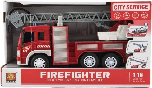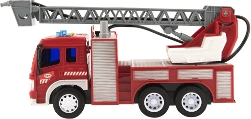 Spraw swoim dzieciom wóz strażacki z realistycznymi funkcjami! Auto jeździ na napędzie ciernym, wydaje dźwięki i miga. Dodatkowo dzięki wysuwanej drabinie i możliwości pryskania wodą zabawa w strażaków jest jeszcze bardziej autentyczna. Długość pojazdu to 30 cm, co jest idealne do zabawy i przechowywania.