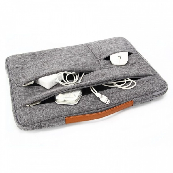 Przemyślany układ oferuje główną komorę na laptopa oraz kilka przednich kieszeni na zasilacz, mysz, kable, dyski zewnętrzne czy karty pamięci. Dwukierunkowy zamek ułatwia wkładanie i wyjmowanie urządzenia, a solidny górny uchwyt zapewnia komfortowe przenoszenie.
