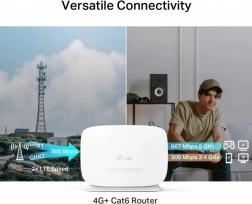 TP-Link Archer MR505 to uniwersalny router 4G LTE dla miejsc bez stałego łącza, a także jako niezawodne łącze zapasowe. Dzięki technologii LTE Advanced Cat6 osiąga pobieranie do 300 Mb/s i wysyłanie do 50 Mb/s. Dwupasmowe Wi‑Fi AC1200 (2,4 GHz 300 Mb/s + 5 GHz 867 Mb/s) pokryje typowe gospodarstwa domowe i mniejsze biura, zapewniając wystarczającą przepustowość dla wideo, wideorozmów i inteligentnego domu.