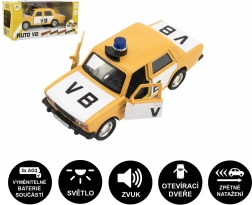 Realistyczny model policyjnego auta VB Lada łączy metal i plastik dla większej wytrzymałości i długiej żywotności. Dzięki napędowi pull-back auto po puszczeniu rusza do przodu, a efekty świetlne i dźwiękowe potęgują wrażenia z zabawy. Otwierane przednie drzwi dodają autentyczności i wspierają kreatywną zabawę.