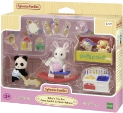 Odkryj magiczny świat SYLVANIAN FAMILIES z zestawem do zabawy, który zawiera dwie urocze figurki – pandzie niemowlę i śnieżnego króliczka – oraz bogaty zestaw mebli i akcesoriów do nieskończonych scenek. Figurki mają miękką, aksamitną powierzchnię oraz ruchomą główkę, ręce i nogi, dzięki czemu łatwo ustawisz je w różnych pozach. Idealne do kreatywnej zabawy i rozwijania wyobraźni dzieci od 3 lat.