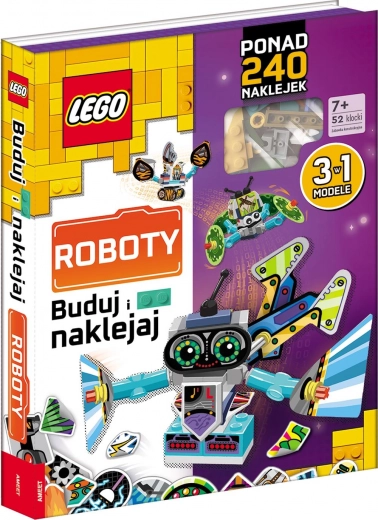 - Książka z zadaniami i kolorowankami; 52 klocki LEGO; 3 modele robotów do złożenia; naklejki i papierowe elementy