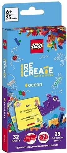 Odkryj nieskończone pokłady kreatywności z zestawem karcianym LEGO Recreate: Karty wyzwań – ocean. Losuj zadania, wybieraj klocki i buduj oryginalne modele inspirowane podwodnym światem. Idealny w podróży i do domowej zabawy, solo lub z przyjaciółmi. 32 karty wyzwań, 25 klocków LEGO i mnóstwo pomysłów na budowanie, takich jak łódź podwodna, wieloryb czy meduza, rozwiną wyobraźnię, kreatywność i zręczność dzieci od 6 lat.
