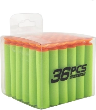 Uzupełnij amunicję do swoich piankowych blasterów praktycznym zestawem 36 zapasowych strzałek z przyssawką w przezroczystym pudełku. Strzałki z miękkiej pianki są bezpieczne do zabawy, kompatybilne z popularnymi zabawkowymi pistoletami, a dzięki przenośnemu pudełku masz zapas zawsze pod ręką.