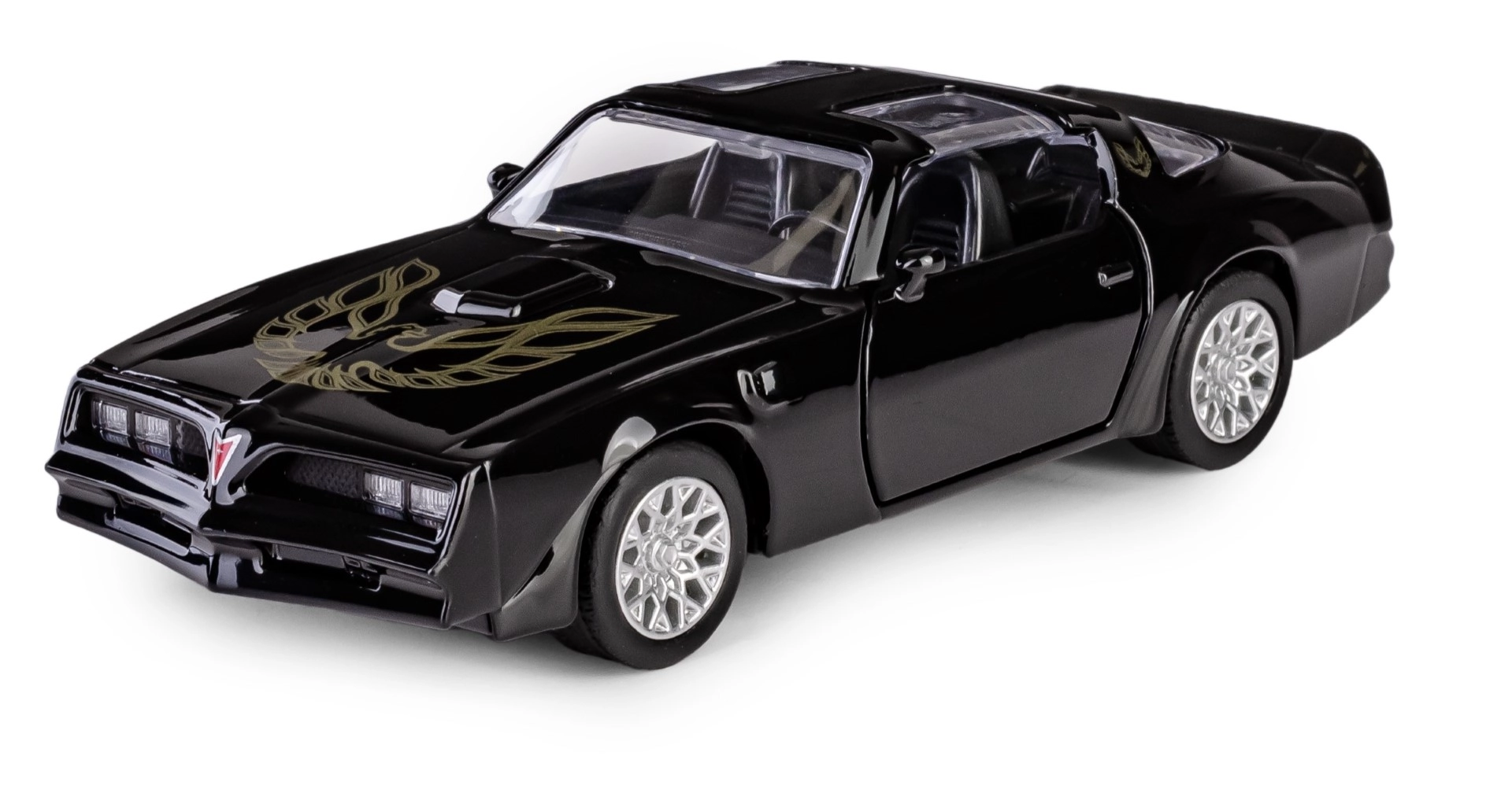 Szczegółowo opracowany metalowy model samochodu RMZ City Pontiac Firebird 1978 w skali 1:40 ucieszy małych i dużych fanów kultowych muscle cars. Połączenie metalu i plastiku zapewnia wytrzymałość i realistyczny wygląd, otwierane drzwi odsłaniają wnętrze, a napęd typu pull-back dodaje dynamicznej zabawy. Oficjalna licencja gwarantuje wierność oryginałowi i wysoką jakość wykonania.