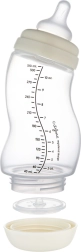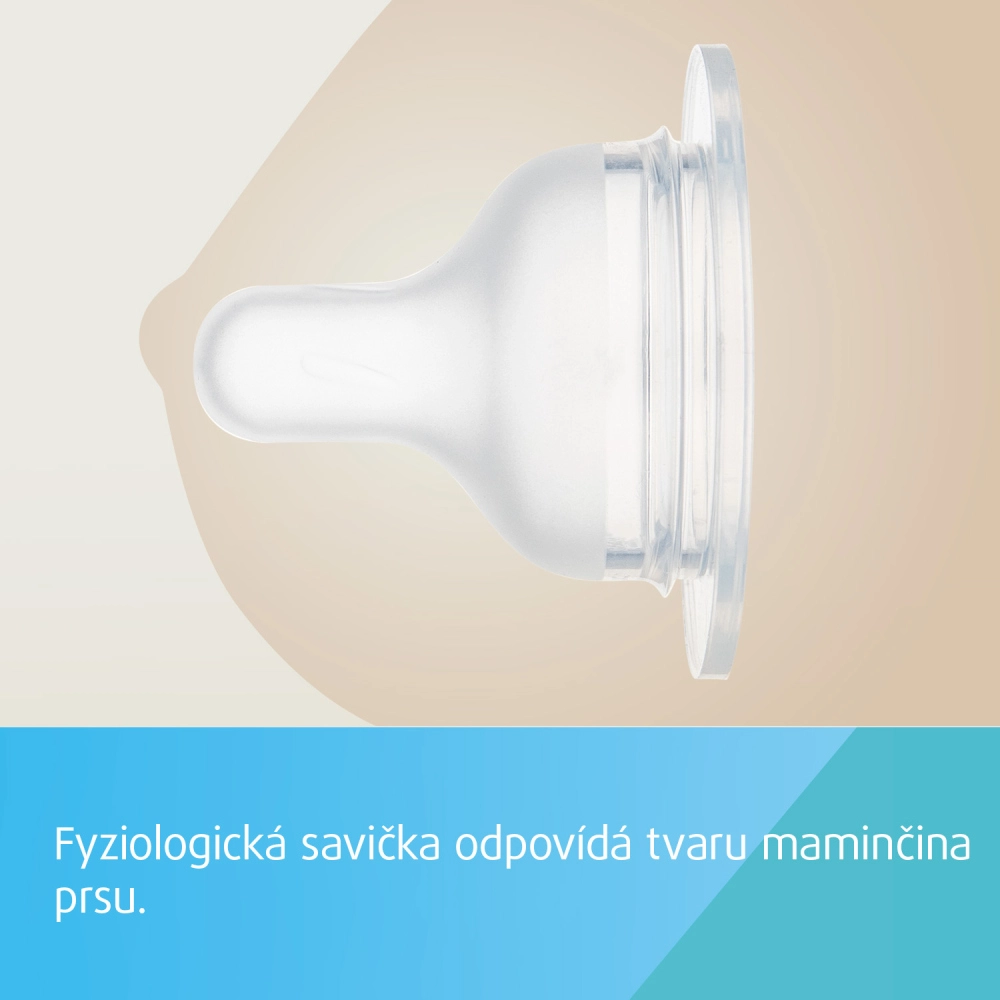 Miękki, matowy hipoalergiczny silikonowy smoczek przypomina kształt piersi i ułatwia przechodzenie między karmieniem piersią a butelką. Wewnętrzne wypustki zapobiegają zapadaniu się smoczka podczas ssania i zapewniają płynny przepływ. Ergonomiczny kształt jest przyjemny w trzymaniu dla rodziców i dzieci oraz wspiera prawidłowe ułożenie główki.