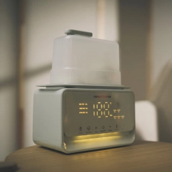 Wbudowany termostat utrzymuje wybraną temperaturę do 10 godzin. Subtelne podświetlenie ułatwia nocną obsługę bez wybudzania maluszka.