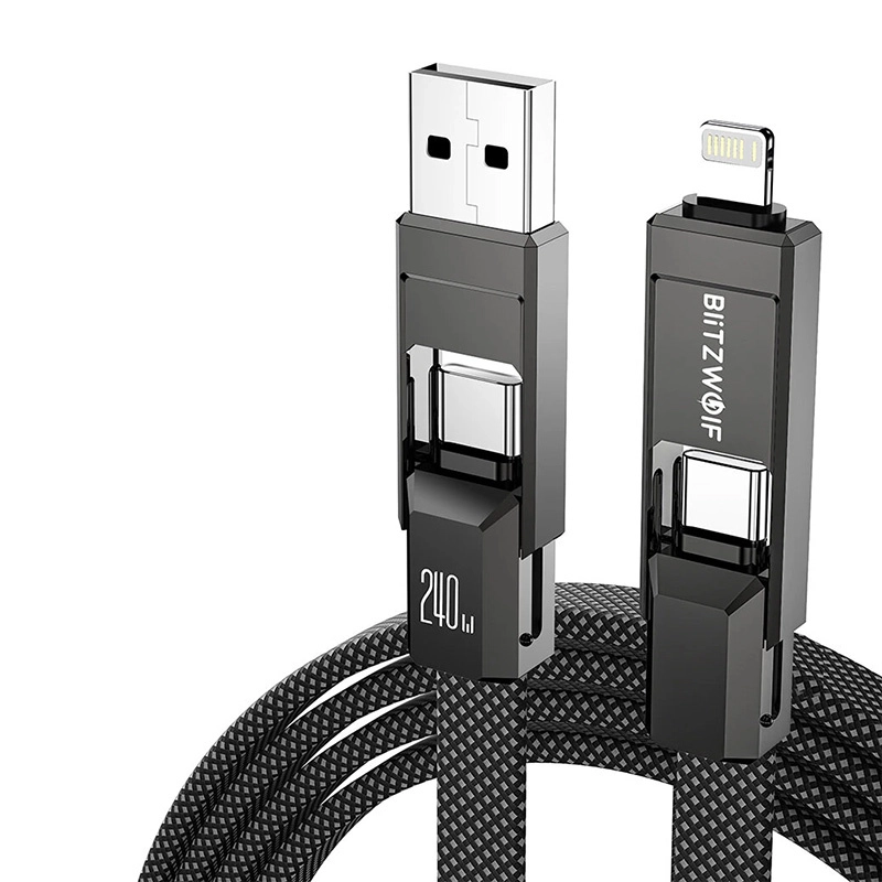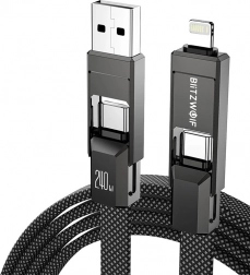 Kabel BlitzWolf BW‑HDC7 to idealne rozwiązanie, gdy potrzebujesz jednego niezawodnego przewodu dla wielu urządzeń. Dzięki połączeniu złączy USB‑A, USB‑C i Lightning wygodnie naładujesz telefony, tablety oraz akcesoria Apple i Android. Pleciony nylonowy oplot i wzmocnione końcówki zwiększają odporność na zginanie i skręcanie.