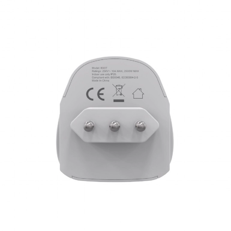 Praktyczny adapter podróżny do podłączania urządzeń z całego świata do włoskich, 3-pinowych gniazd. Dzięki uniwersalnemu gniazdu przyjmuje wtyczki z ponad 200 krajów i zapewnia uziemione oraz bezpieczne połączenie we Włoszech. Idealny w podróży, kompaktowy i łatwy w użyciu. Uwaga: nie przetwarza napięcia.