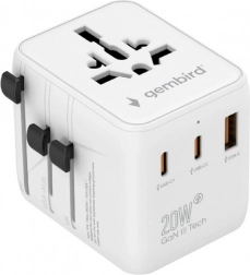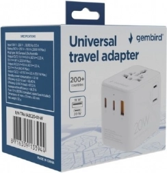 Kompaktowy uniwersalny adapter podróżny o mocy 20 W z technologią GaN do szybkiego i efektywnego ładowania w podróży. Oferuje USB-C PD 20 W oraz USB-A QC 3.0 18 W, uniwersalne gniazdo sieciowe i wysuwane wtyki US/UK/EU/AU do użytku w ponad 200 krajach. Lekki, wygodny w obsłudze jedną ręką, z zabezpieczeniami przed dziećmi i bezpiecznikiem 10 A dla bezpiecznego użytkowania.