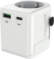 Ten uniwersalny adapter podróżny z uziemieniem pozwala bezpiecznie podłączyć elektronikę niemal na całym świecie. Dzięki technologii GaN jest mniejszy, chłodniejszy i bardziej efektywny, a zintegrowane porty USB‑C PD 20 W i USB‑A QC 3.0 18 W szybko doładowują telefon, słuchawki lub mniejszy tablet. Gniazdo EU Schuko obsługuje większość europejskich wtyków zasilających.