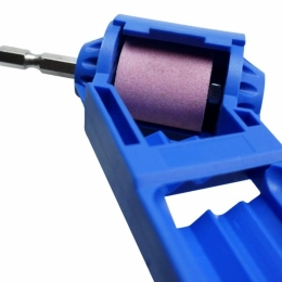 Kompaktowa przenośna ostrzałka do wierteł. Wykonana z lekkiego i wytrzymałego plastiku, umożliwia szybkie ostrzenie wierteł, gdy akurat nie pracujesz. Ostrzałka jest kompatybilna z większością wierteł o średnicy od 2 mm do 12,5 mm. Posiada trzy specjalne rowki odpowiadające średnicy wierteł. Łatwa w użyciu – wystarczy podłączyć wkrętarkę lub wiertarkę z boku.