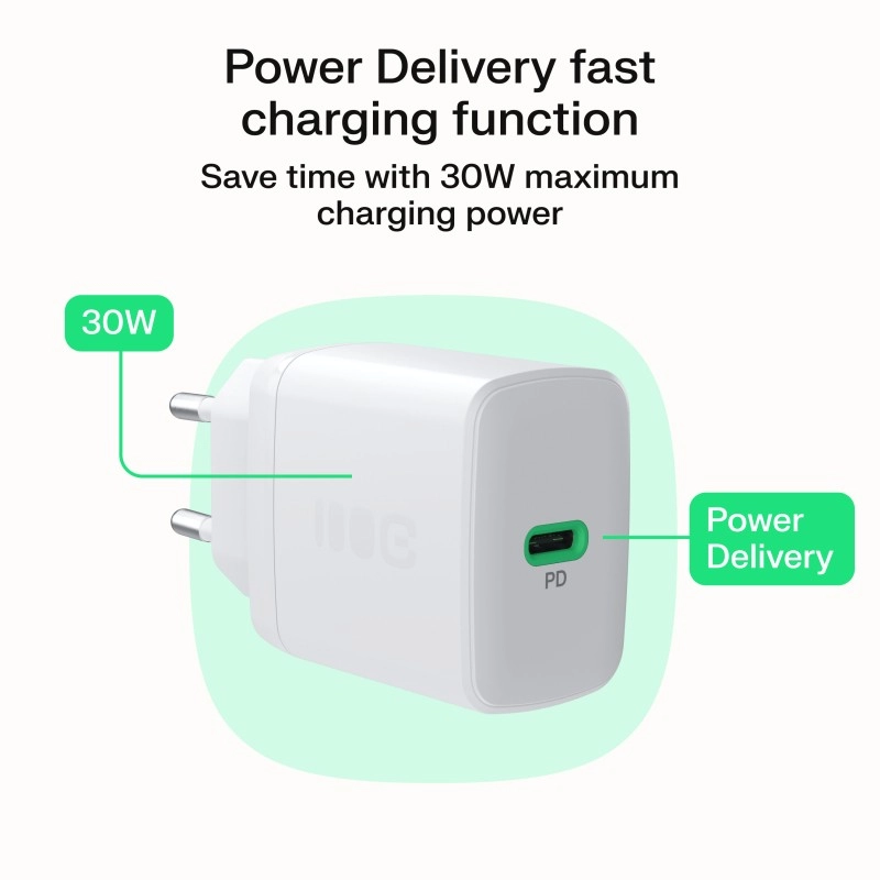 Skorzystaj z szybkiego ładowania USB‑C Power Delivery 30 W i uzupełnij energię telefonu do 80% w około 40 minut. Pojedynczy port USB‑C zasili szeroką gamę nowoczesnych urządzeń, w tym Apple iPhone, Samsung Galaxy czy Google Pixel, a także bezprzewodowe słuchawki. Kompaktowa obudowa z zaokrąglonymi krawędziami jest idealna do gniazdka w domu i w podróży.