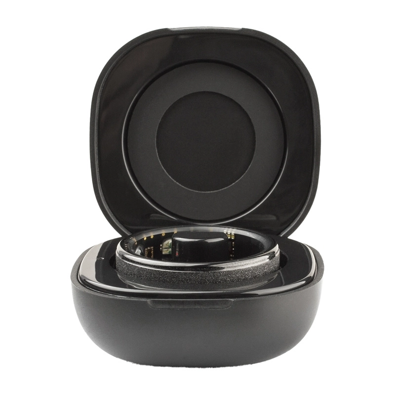 Pierścień jest lekki (tylko 4,7 g), wykonany z wytrzymałych materiałów ze szczotkowanym wykończeniem, a dzięki kompaktowemu etui ładującemu naładujesz go nawet 13× z jednego naładowania etui. Sam pierścień działa na jednym ładowaniu około 3–5 dni, w zależności od intensywności użytkowania.