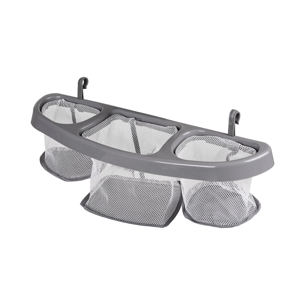 Miej pieluchy, chusteczki i kremy w zasięgu ręki. Zawieszany organizer z trzema przegródkami oraz boczna kieszeń utrzymają wszystko w porządku i czystości.