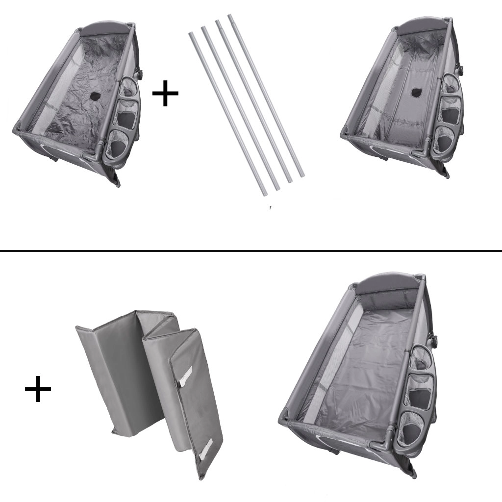 Dla rodziców przygotowano nakładkę do przewijania oraz praktyczne organizery na pieluchy i drobiazgi, więc wszystko masz zawsze pod ręką. Szybki mechanizm składania, kółka z blokadą oraz torba transportowa ułatwiają przenoszenie i przechowywanie – idealne na wakacje, do dziadków i do małych mieszkań.