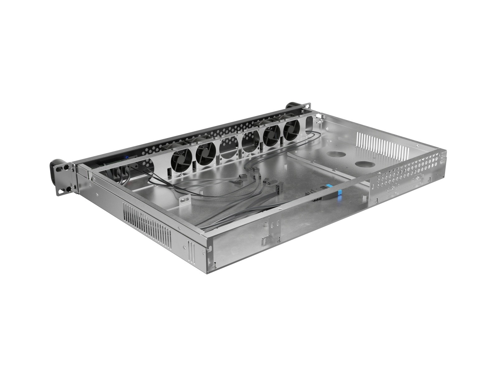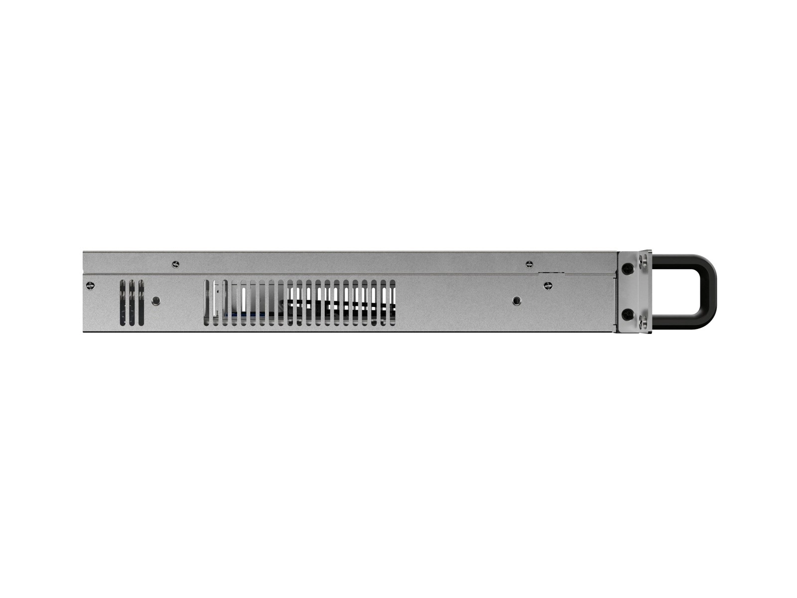 Ta obudowa rack 1U dla standardu 19" została zaprojektowana do budowy kompaktowych, niezawodnych i energooszczędnych serwerów. Obsługuje wyłącznie płyty Mini‑ITX, ale oferuje jeden slot PCI do rozbudowy (np. 10GbE NIC lub kontroler hot‑swap) oraz miejsce na 1× 2,5" lub 1× 3,5" dysk z możliwością dodania kolejnego SSD przy odpowiedniej konfiguracji zasilania. Przedni panel z USB 3.0, przyciskami Power/Reset i perforacją dla przepływu powietrza przyspiesza serwis i codzienną pracę.