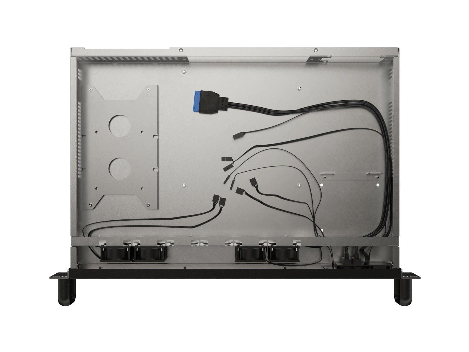 Perforowany panel przedni i 4× 40 mm wentylatory PWM zapewniają stabilne temperatury także przy pracy ciągłej, z naciskiem na cichą pracę i długą żywotność.
