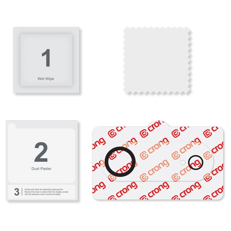 - Szkło ochronne na aparat, akcesoria do czyszczenia i montażu