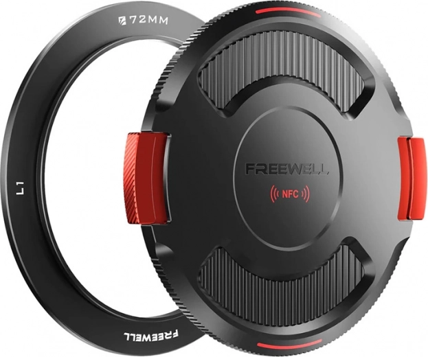 Podstawowy pierścień Freewell 72 mm stanowi punkt wejścia do modułowego systemu Real Locking VND/CPL. Dzięki precyzyjnej obróbce aluminium zapewnia stabilne, trwałe i powtarzalne mocowanie, które wytrzymuje częsty montaż i demontaż filtrów. Dekielek z podwójną zapadką i wbudowanym NFC chroni obiektyw oraz założony filtr, a jednocześnie umożliwia szybki dostęp do materiałów dla użytkownika przez smartfon.