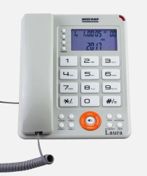 Stylowy telefon stacjonarny Mescomp Laura MT-816 jest idealny do domu i biura. Oferuje duży podświetlany wyświetlacz, duże przyciski dla wygodnej obsługi oraz szereg inteligentnych funkcji, takich jak identyfikacja numeru dzwoniącego, szybkie wybieranie, tryb głośnomówiący i optyczna sygnalizacja połączenia.