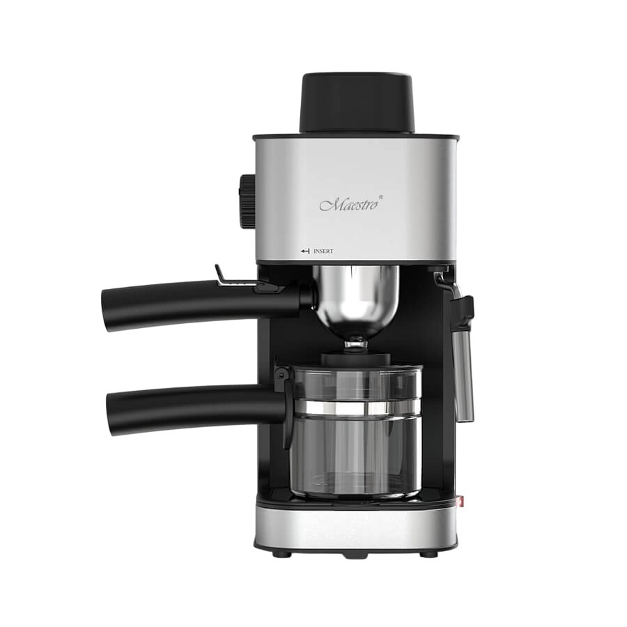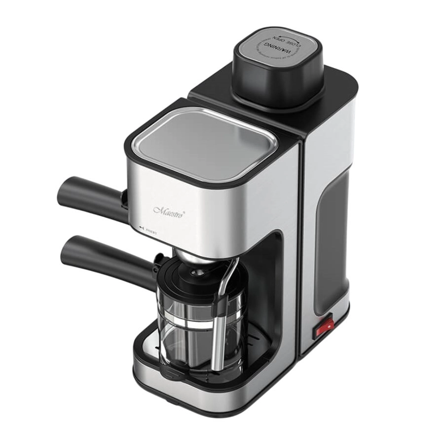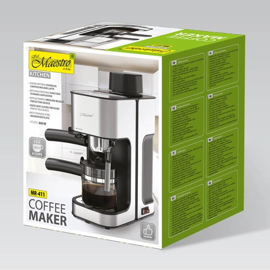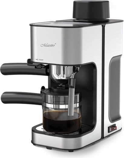 Ciesz się domową kawą jak z kawiarni dzięki kompaktowemu ekspresowi kolbowemu Maestro. Oferuje przygotowanie espresso, cappuccino i latte z kawy mielonej, dyszę parową do spieniania mleka, podgrzewaną powierzchnię na filiżanki oraz praktyczny szklany dzbanek o pojemności do 240 ml. Dzięki ciśnieniu 3,5 bara i mocy 800 W każdego dnia otrzymasz aromatyczną kawę o bogatym smaku.