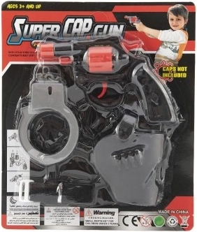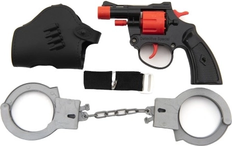 Ten dziecięcy pistolet na kapiszony zapewnia mnóstwo bezpiecznej zabawy i pobudza wyobraźnię podczas zabaw w policjantów. W zestawie znajduje się praktyczna kabura na pas oraz plastikowe kajdanki, dzięki którym wrażenia z zabawy są jeszcze bardziej autentyczne. Dzięki kompaktowej długości 13 cm pistolet wygodnie leży w dłoni także młodszym dzieciom.