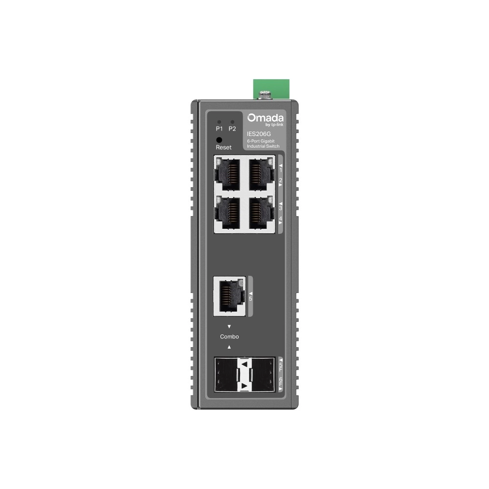 TP-Link OMADA IES206G to kompaktowy przemysłowy switch zaprojektowany do stabilnego i bezpiecznego łączenia urządzeń w produkcji, transporcie, energetyce oraz inteligentnych budynkach. Sześć gigabitowych portów, w tym SFP oraz combo RJ45/SFP, zapewnia elastyczne możliwości uplinku i rozbudowy sieci, a platforma chmurowa Omada umożliwia łatwe wdrożenie, monitoring i zarządzanie z dowolnego miejsca.