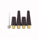 Zestaw nasadek, w tym zawór igłowy i stożkowe dysze, obejmuje pompowanie piłek, zabawek i materacy – wystarczy przykręcić i zacząć.