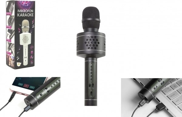 - mikrofon karaoke, kabel ładowania USB–Micro USB, kabel audio, instrukcja obsługi