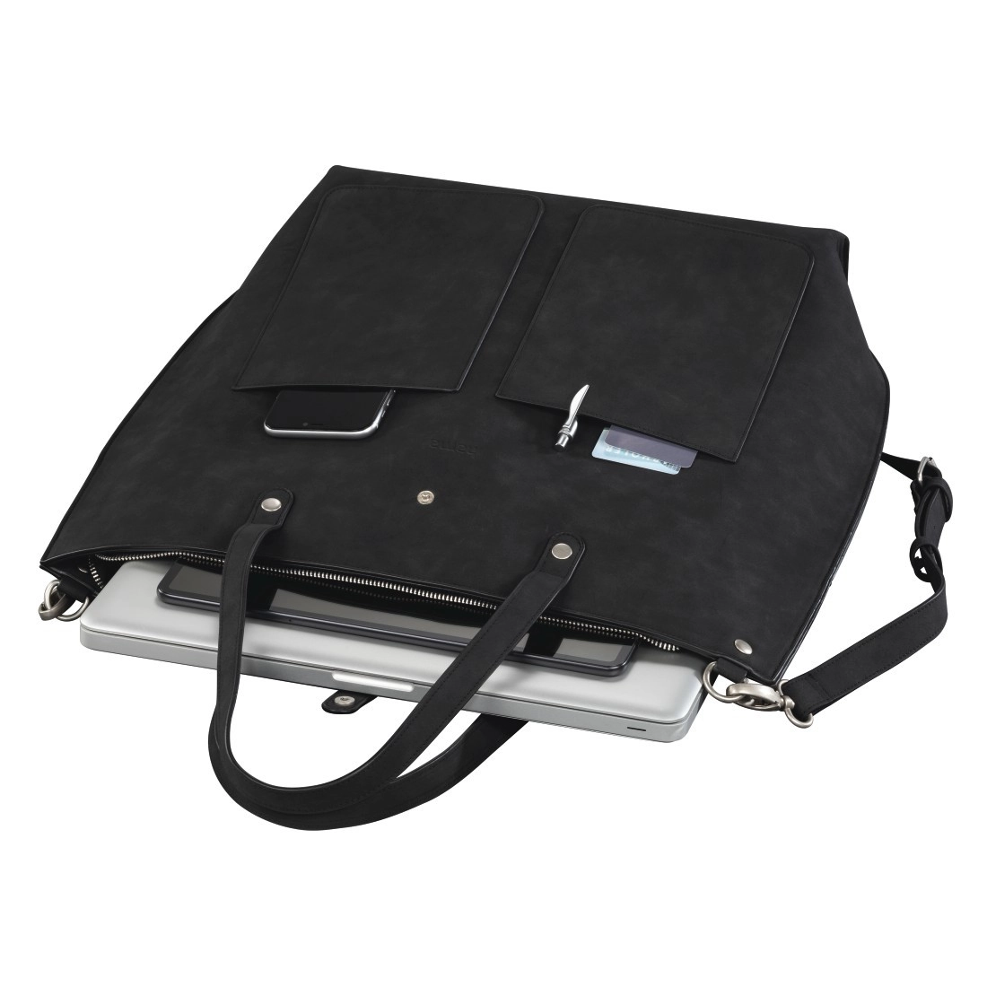 Stylowa torba Classy została zaprojektowana dla nowoczesnych profesjonalistek, które chcą połączyć elegancję z funkcjonalnością. Delikatnie połyskująca podszewka oraz starannie opracowany materiał o wyglądzie zamszu nadają torbie ponadczasowy charakter, a przemyślany układ wnętrza utrzymuje wszystko przejrzyście na swoim miejscu.
