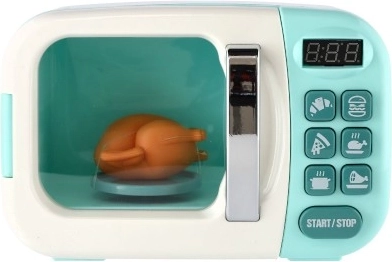 Kuchenka mikrofalowa symuluje prawdziwe funkcje z realistycznymi efektami dźwiękowymi i świetlnymi oraz obracającym się kurczakiem.