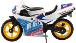 Model wyścigowego motocykla mierzy 8 cm i jest wykonany z kombinacji metalu i plastiku. Świetny dla dzieci od 3 lat, wspiera kreatywną i imaginacyjną zabawę. Motocykl jest pakowany na karcie i dostępny w kilku różnych kolorach.