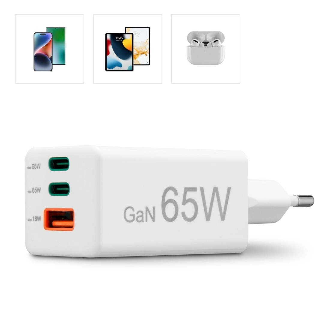 Nowoczesne układy GaN zapewniają wysoką efektywność, mniej ciepła i kompaktowe wymiary przy mocy do 65 W, co umożliwia szybkie ładowanie telefonów, tabletów i laptopów.
