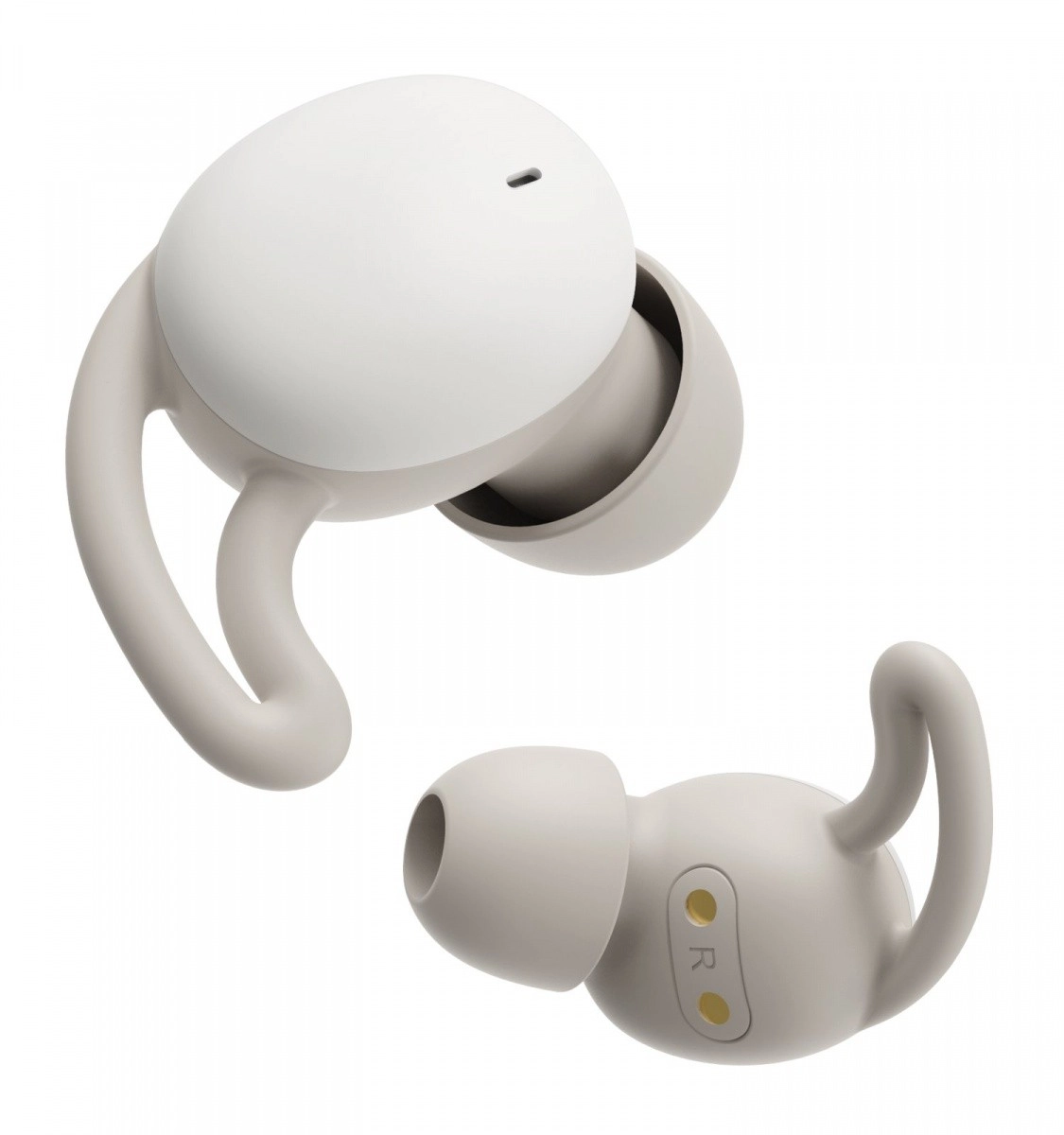 Dyskretnie zaprojektowane haczyki/skrzydełka utrzymują słuchawki pewnie na miejscu nawet podczas ruchu czy przewracania się w trakcie snu.