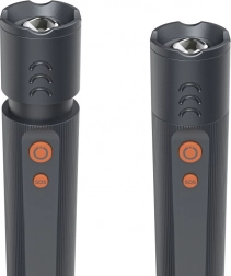 Solidny aluminiowy korpus jest odporny na uderzenia i wytrzymuje upadek z wysokości do 1,5 m. Ergonomiczny kształt i intuicyjne przyciski zapewniają wygodną obsługę także w rękawicach.