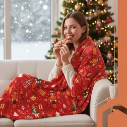 Koc ma uniwersalny rozmiar 150 × 200 cm, więc pasuje na sofę, łóżko i do fotela w salonie. Użyjesz go jako koca lub dekoracyjnej narzuty. Po złożeniu zajmuje minimum miejsca, a dzięki satynowej wstążce jest gotowy także jako świetny świąteczny prezent.