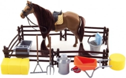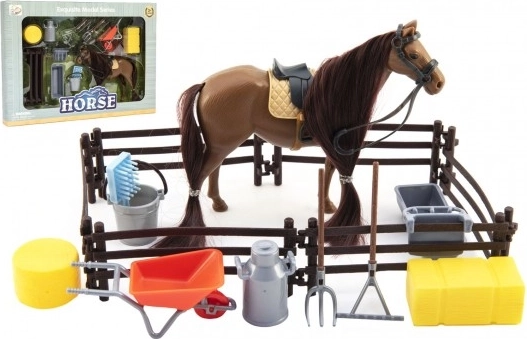 Ten wspaniały zestaw do pielęgnacji koni dostarcza wszystkiego, co jest potrzebne małym farmerom i miłośnikom koni. Koń z siodłem i uzdą ma piękną długą grzywę i ogon, które można czesać.