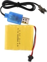 Autko zasilane jest przez baterię niklowo-kadmową 4.8V 300mAh, co redukuje częste ładowanie podczas zabawy. Ładowanie trwa między 2 a 3 godzinami. Do pilota potrzebne są 2 baterie AA (nie są częścią zestawu).