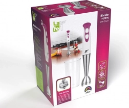 Blender ręczny Lafe to niezawodny pomocnik do codziennego gotowania. Oferuje moc 400 W, stalowe ostrza oraz tryb Turbo do twardszych składników. Dzięki odłączanej nierdzewnej stopie i osłonie przeciw rozpryskom z łatwością przygotujesz kremowe zupy, sosy i smoothie. W zestawie znajduje się pojemnik z miarką 700 ml.
