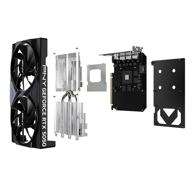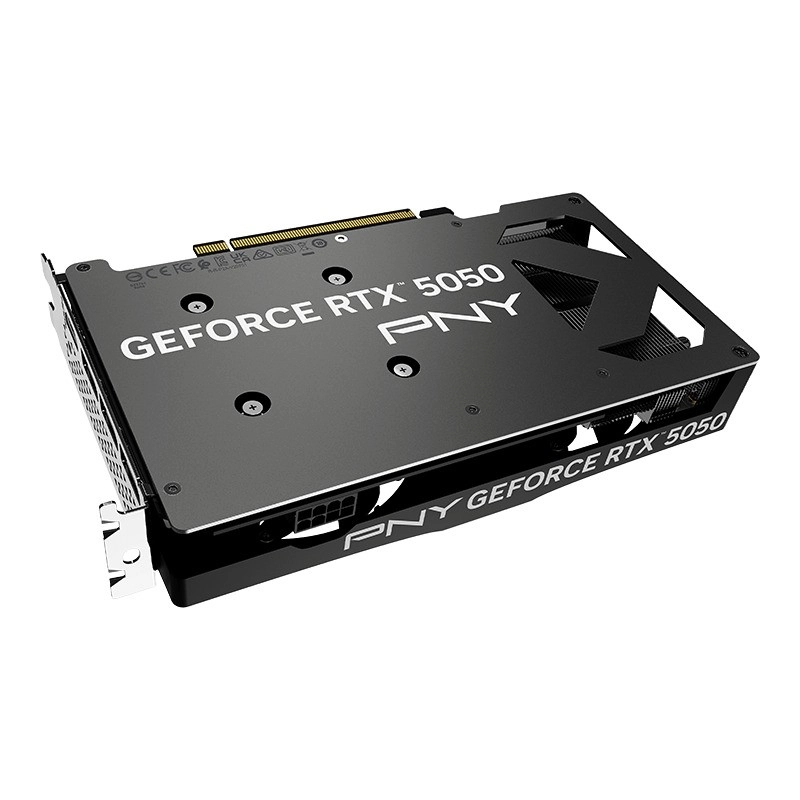 Model PNY GeForce RTX 5050 bazuje na architekturze NVIDIA Blackwell i dostarcza wysoką wydajność do gier i tworzenia treści. Dzięki zaawansowanym rdzeniom RT i Tensor radzi sobie z realistycznym oświetleniem w ray tracingu, a jednocześnie przyspiesza funkcje AI, skalowanie obrazu i aplikacje produktywne. Metalowy backplate zwiększa sztywność i chroni PCB, natomiast podwójne wentylatory osiowe utrzymują niskie temperatury i cichą pracę.