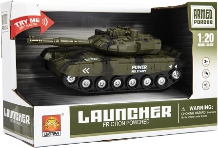 Plastowy czołg na napęd cierny ze światłem i dźwiękiem, 20 cm