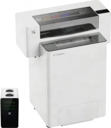 Kompletny workflow „Print‑to‑Bake”: druk, nanoszenie proszku klejącego, wyrównanie i wypiekanie gwarantują elastyczne, odporne i trwałe kolorystycznie nadruki. Automatyczny OS1 Shaker Oven oszczędza proszek dzięki recyklingowi i pracy dwukierunkowej. Oczyszczacz powietrza SafetyPro AP2 skutecznie usuwa pył i zapachy. Oprogramowanie xTool Creative Space (AI Design, RIP, Auto Nesting, Layout) upraszcza przygotowanie danych oraz sterowanie drukiem.