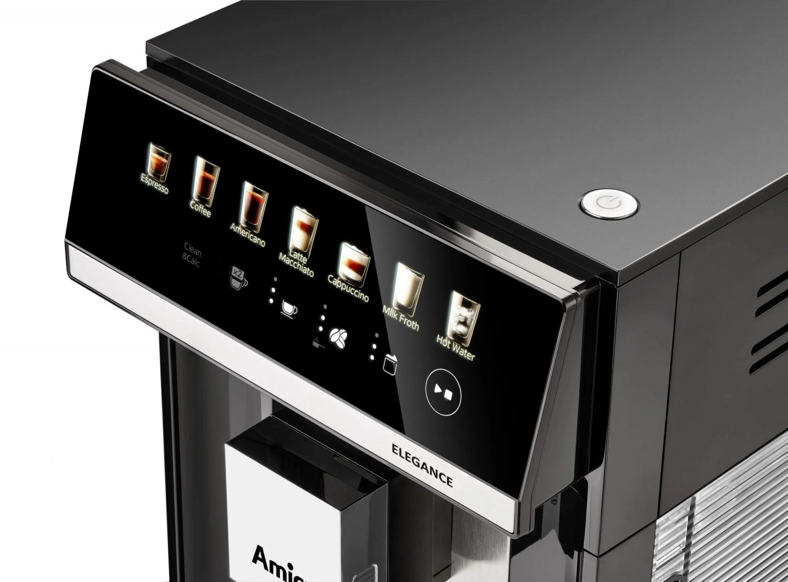 Amica Elegance to niezawodny automatyczny ekspres do przygotowania espresso, cappuccino i caffè latte w idealnych proporcjach. Dzięki stalowemu młynkowi mieli ziarna tuż przed ekstrakcją, a Ty wybierzesz 5 poziomów mielenia, aby uzyskać pożądaną intensywność smaku. Wysokie ciśnienie gwarantuje pełny aromat i kremową piankę, a system SuperCrema dopełnia każdy kubek bogatą cremą.
