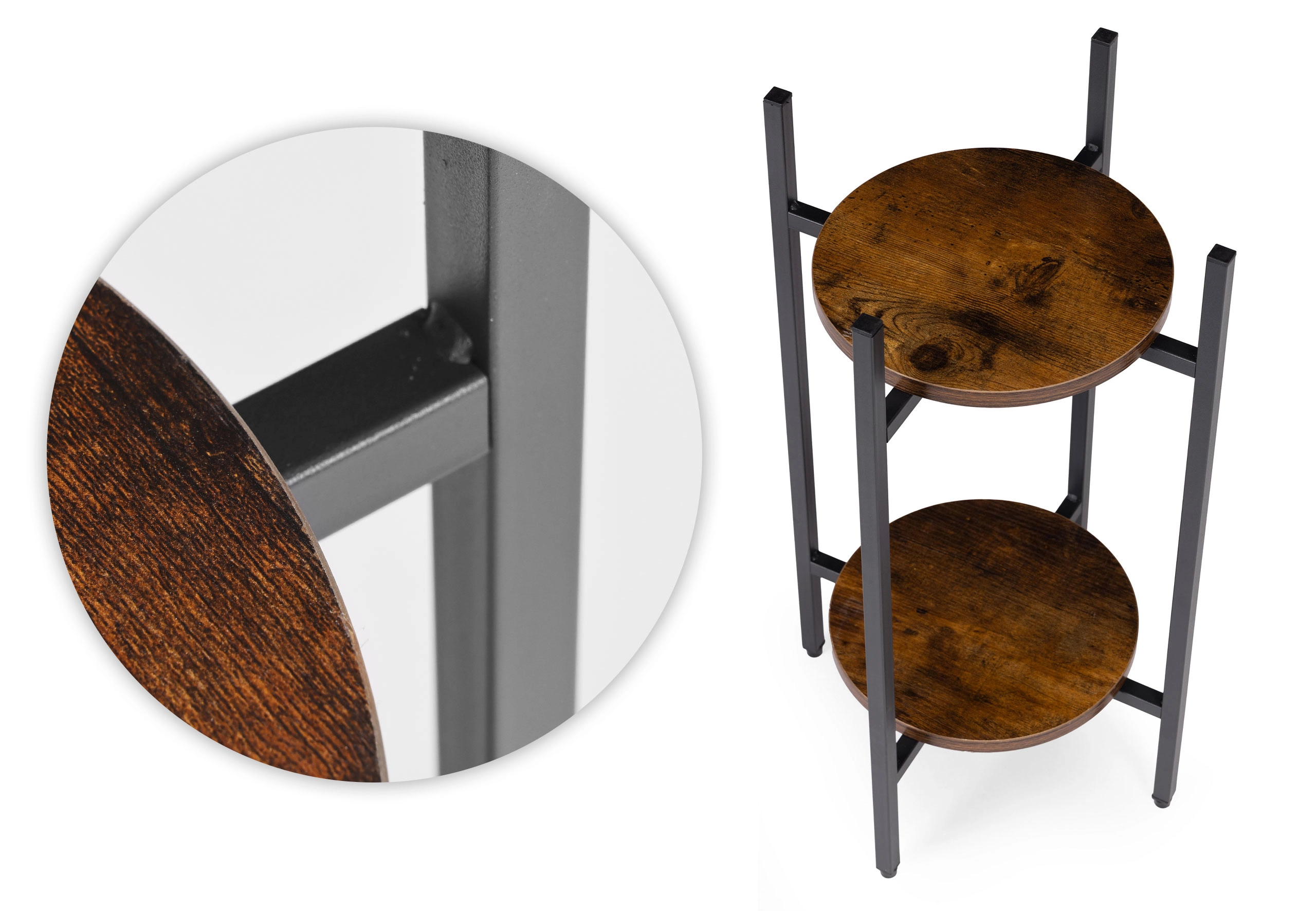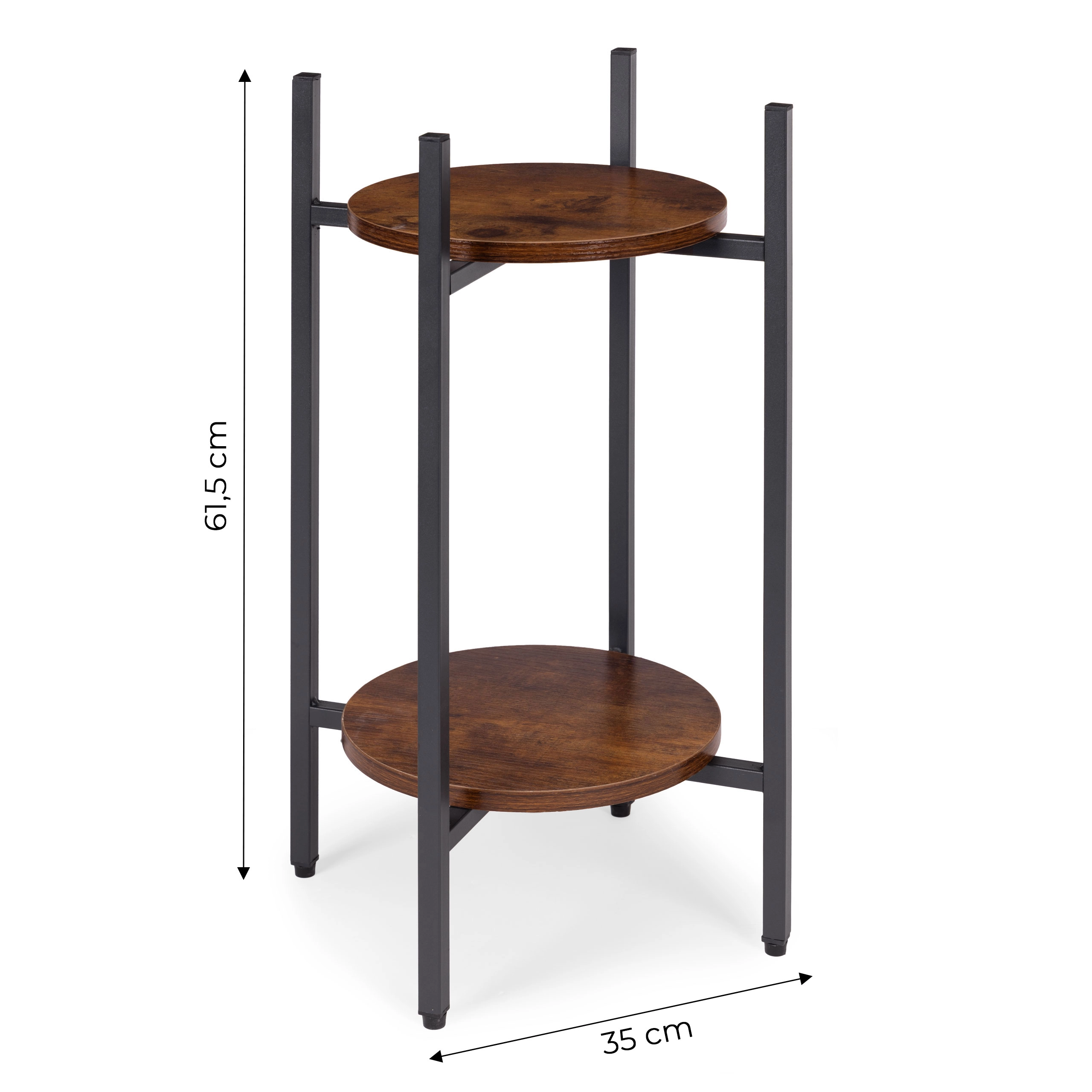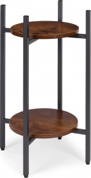 Wyeksponuj ulubione kwiaty, zioła lub dekoracje na dwupoziomowym stojaku, który wprowadza przemysłowy (industrialny) charakter do każdego wnętrza. Dzięki kompaktowym wymiarom łatwo ustawisz go przy sofie, w korytarzu, kuchni czy na zadaszonym tarasie. Uniwersalne wykonanie pasuje do nowoczesnych i eklektycznych aranżacji, pomagając tworzyć atrakcyjne zielone kompozycje.