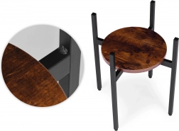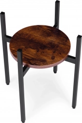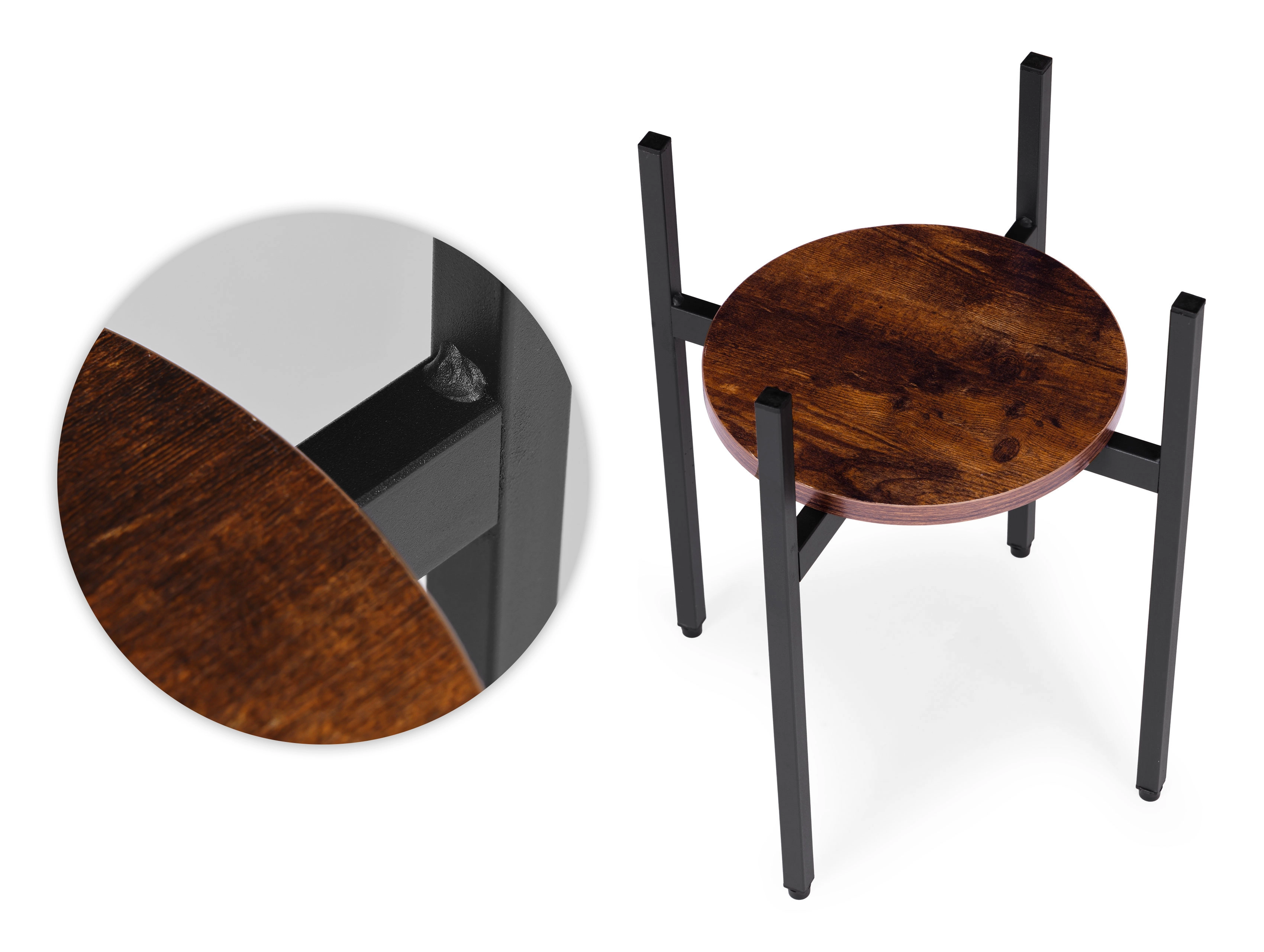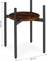Wyeksponuj ulubione rośliny stylowo i z dbałością o przestrzeń. Ten stojak w industrialnym stylu łączy stal malowaną proszkowo dla długiej żywotności i odporności na korozję z półką z płyty wiórowej w dekorze naturalnego drewna. Świetnie wpisze się w nowoczesne i minimalistyczne wnętrza, podkreślając zieleń w każdym pomieszczeniu.