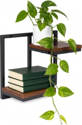 Stylowa wisząca półka na kwiaty w stylu loft łączy solidną stalową ramę z półkami w dekorze drewna. Dzięki dwupoziomowemu układowi oszczędzasz miejsce i elegancko wyeksponujesz zioła, kwiaty lub dekoracje. W zestawie znajduje się kompletny zestaw montażowy, udźwig do 10 kg oraz trwałe wykończenie malowane proszkowo dla długiej żywotności.