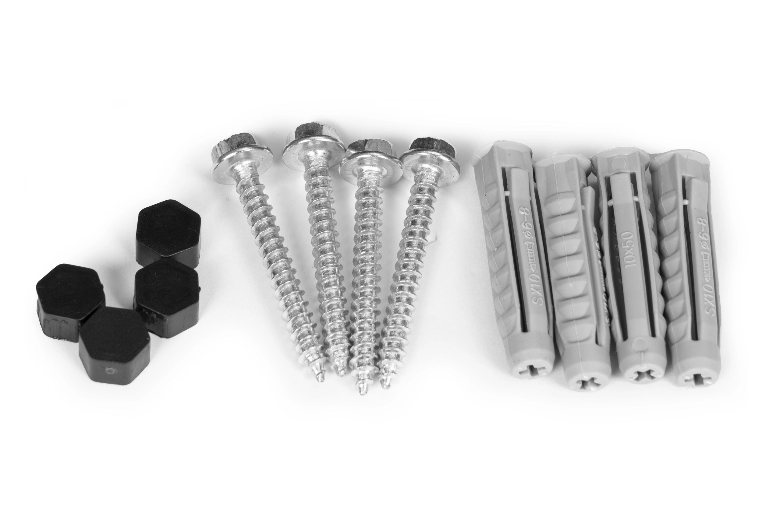 W opakowaniu znajdują się kołki, śruby i zaślepki. Wstępnie wywiercone otwory montażowe umożliwiają szybki i solidny montaż na ścianie.